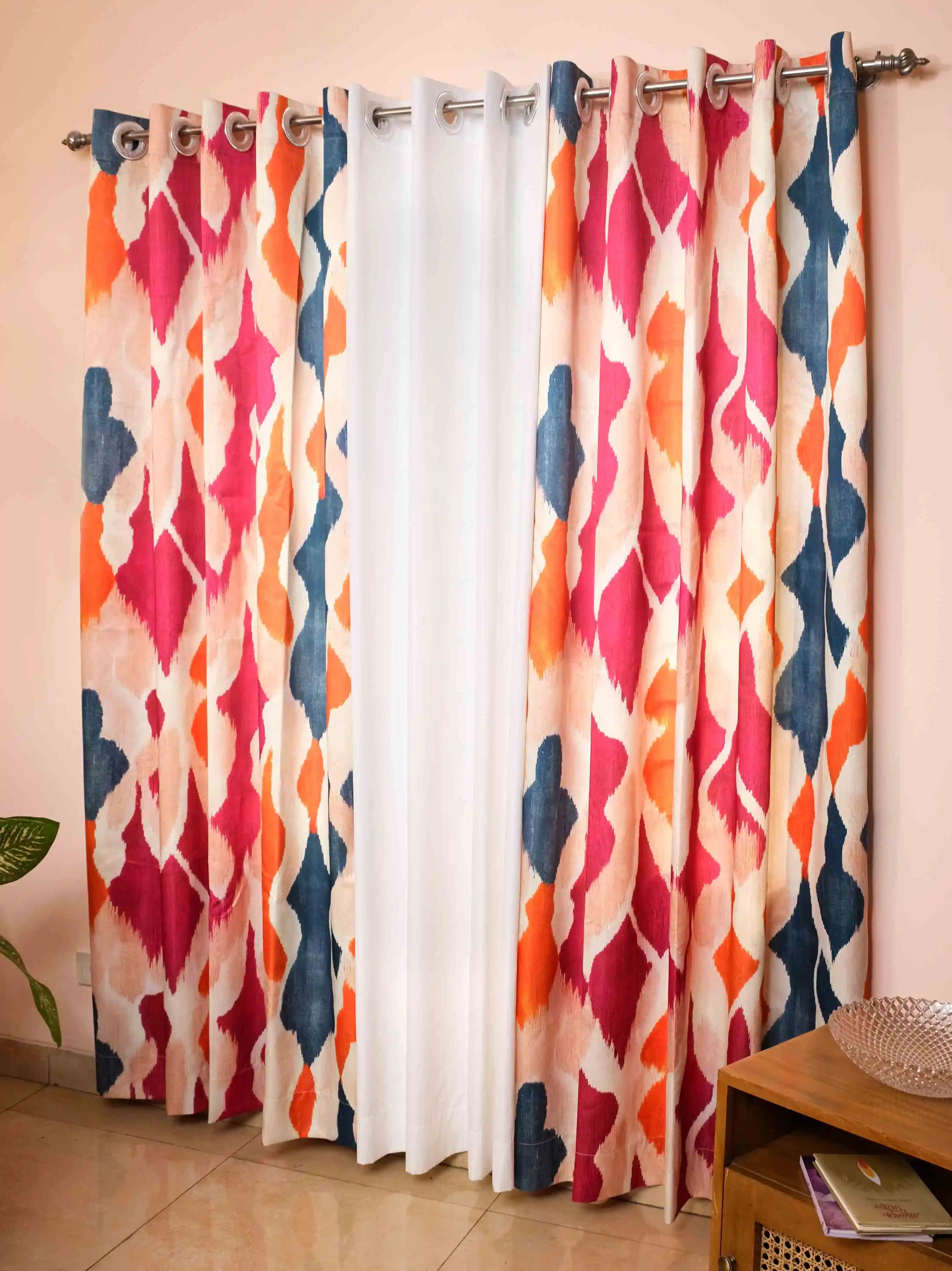 Add a vibrant, artistic touch to your windows with our Ikat print curtain. Crafted from smooth polyester fabric, this panel features a captivating, multi-colored sublimation print. It offers a beautiful balance of light filtration and privacy. The bold, traditional pattern brings a global-inspired warmth to any room.