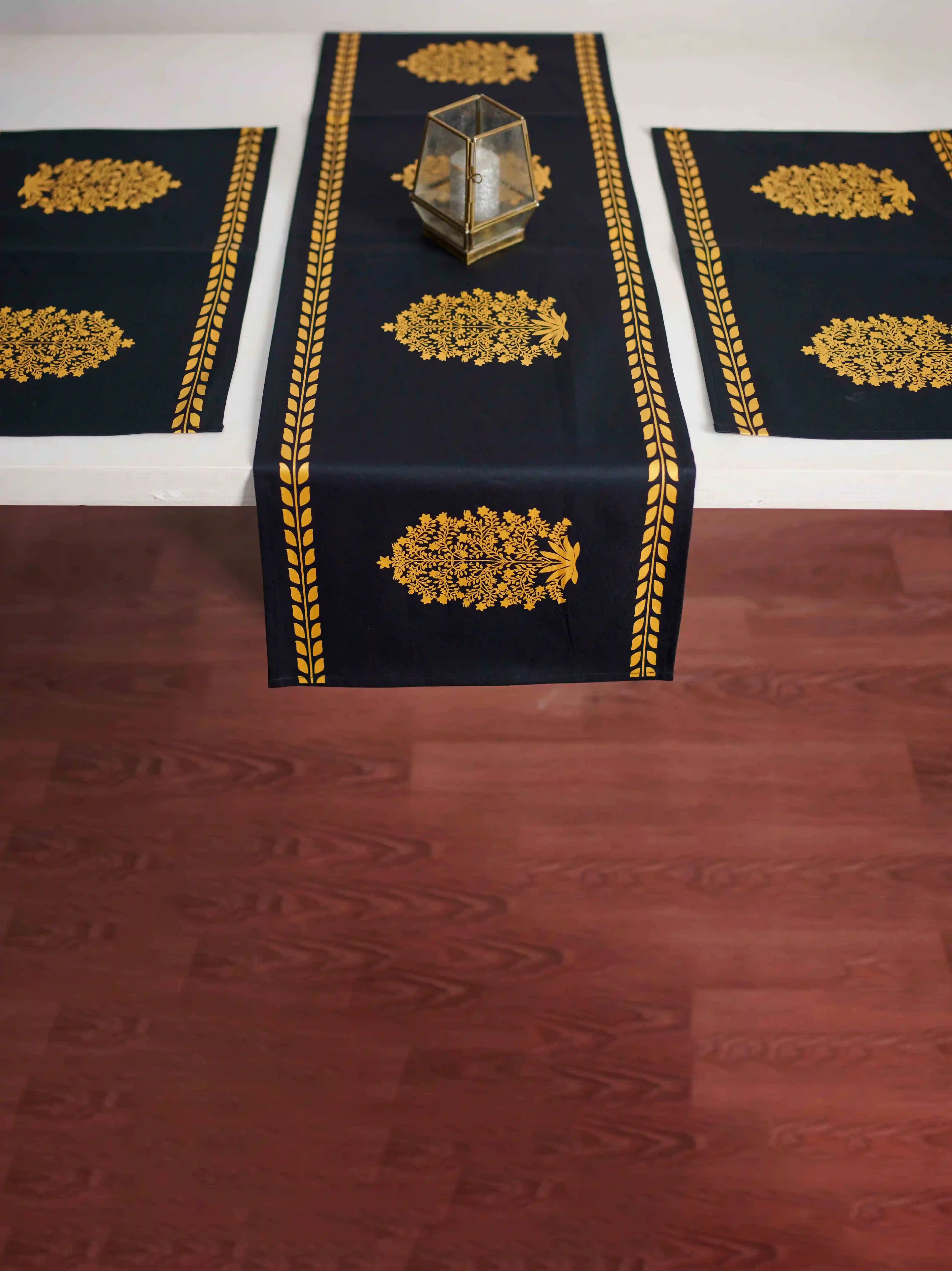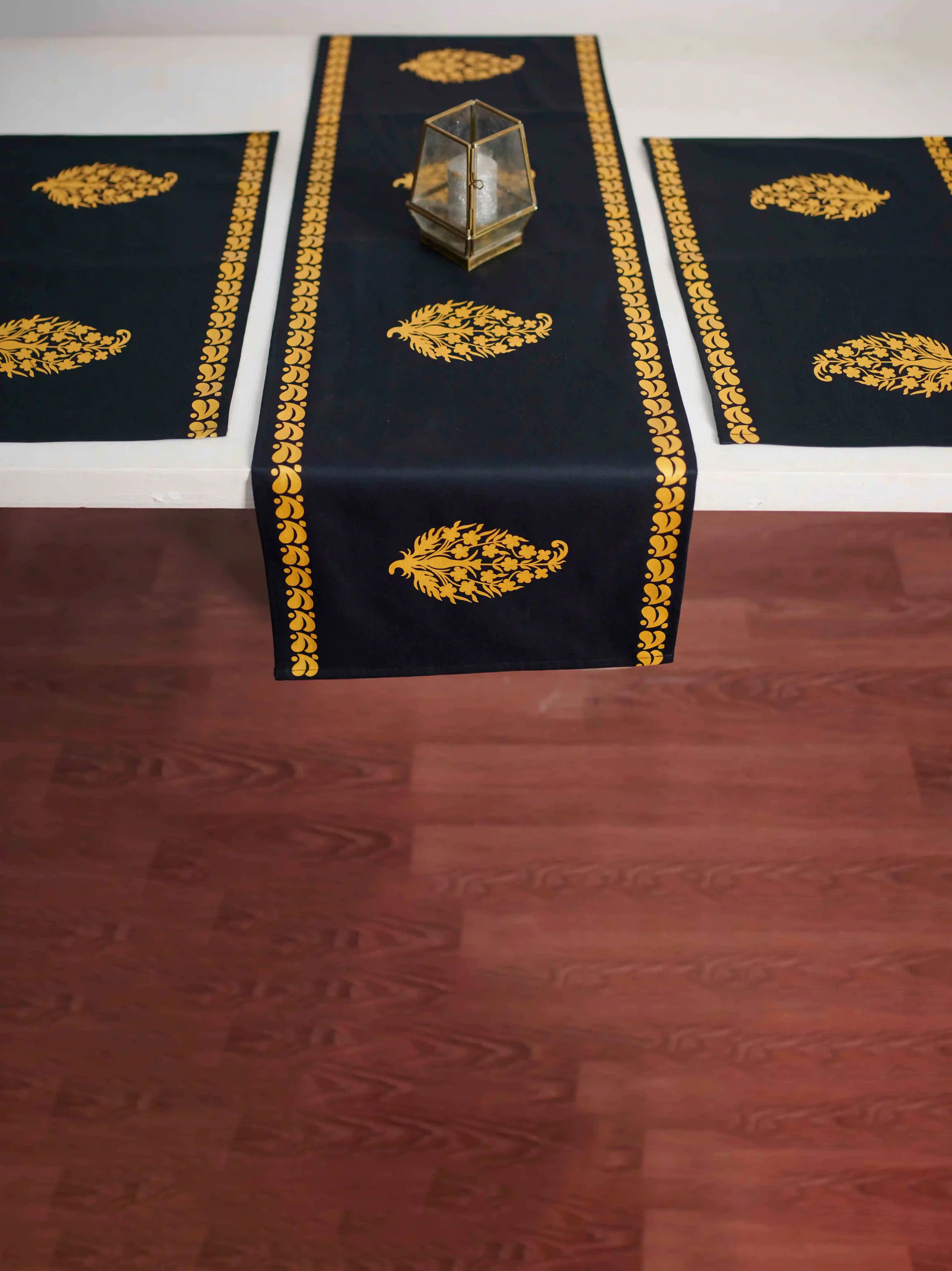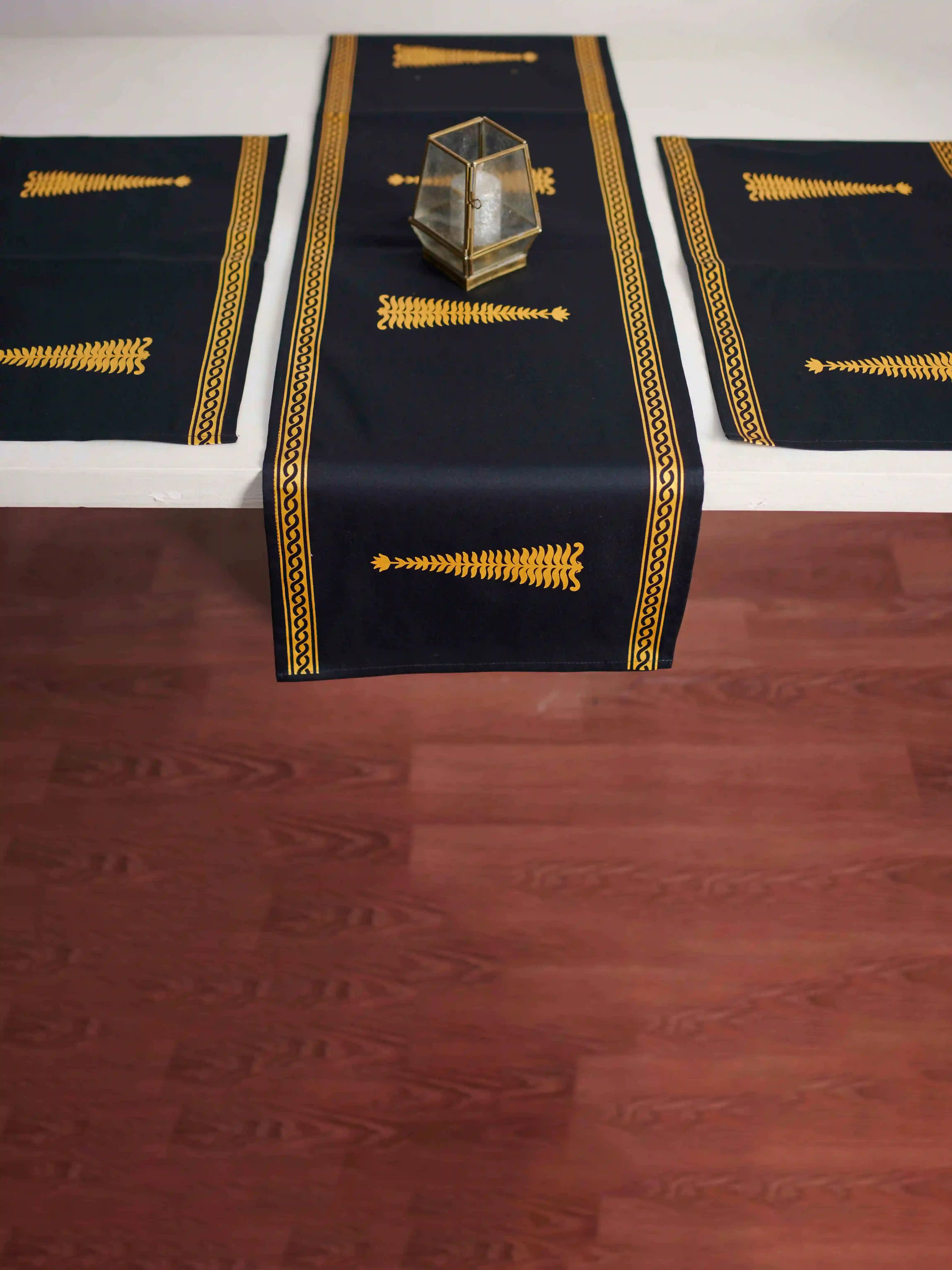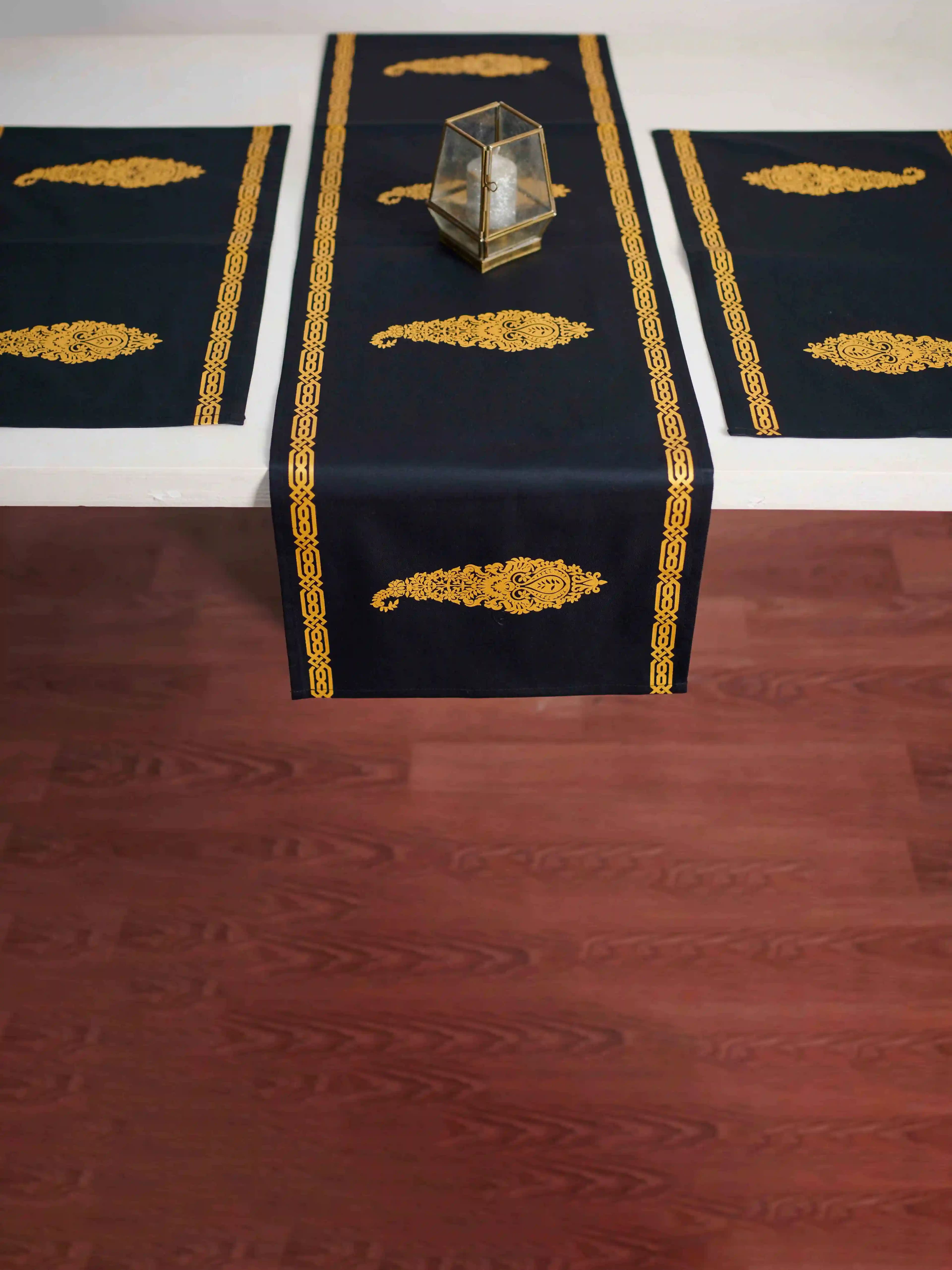 Spruce up your dining table with this stylish table runner from Kaaruj. The set includes a long runner (60 inches) and 6 placemats. Made from durable twill cotton, this set is perfect for everyday use or special occasions.