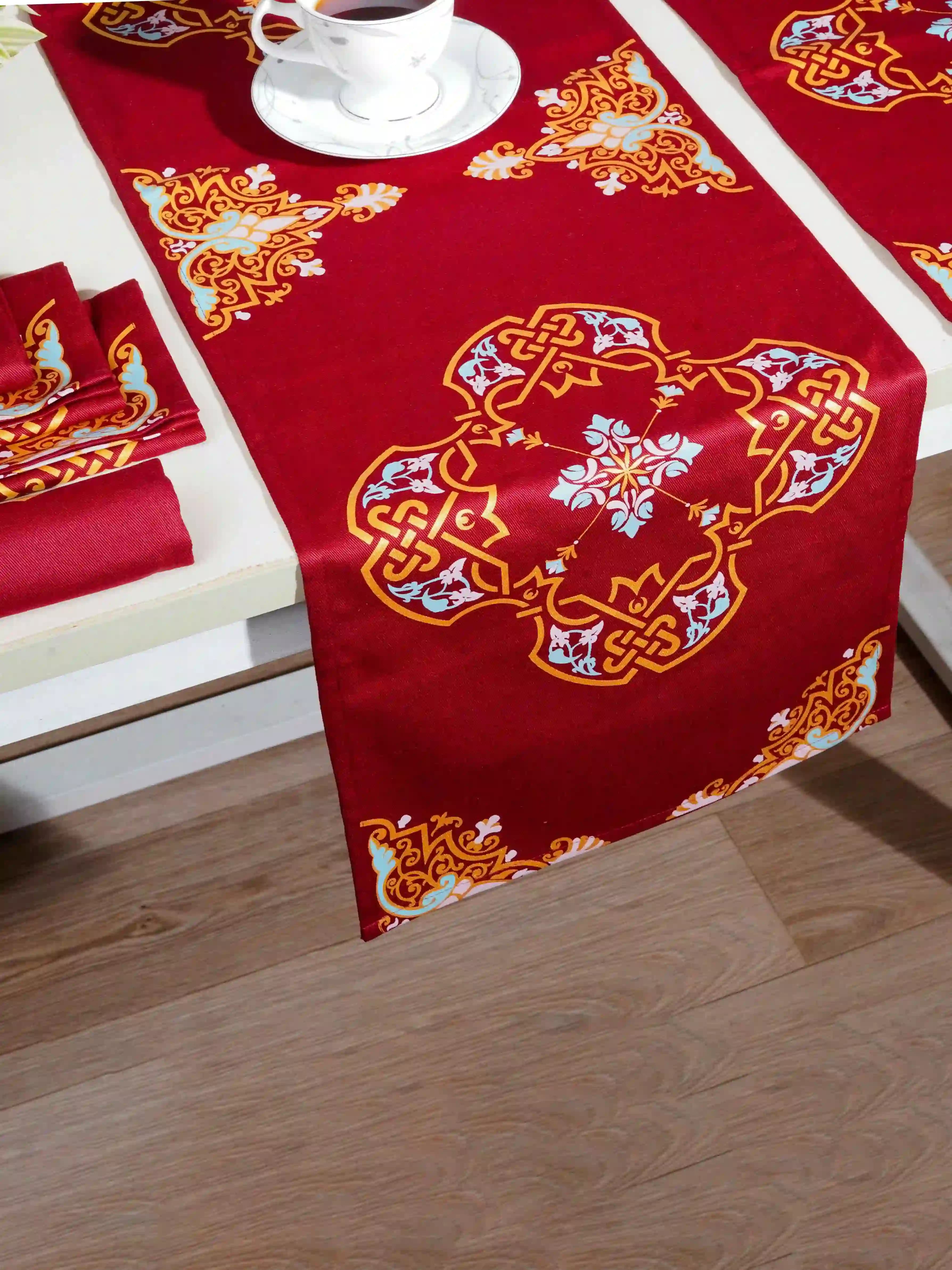 Enhance your dining table with this stylish Arabic-themed runner and placemat set. Crafted from premium twill fabric, the screen-printed design brings a cultural charm to your home. The set includes a runner and matching placemats for a coordinated look.