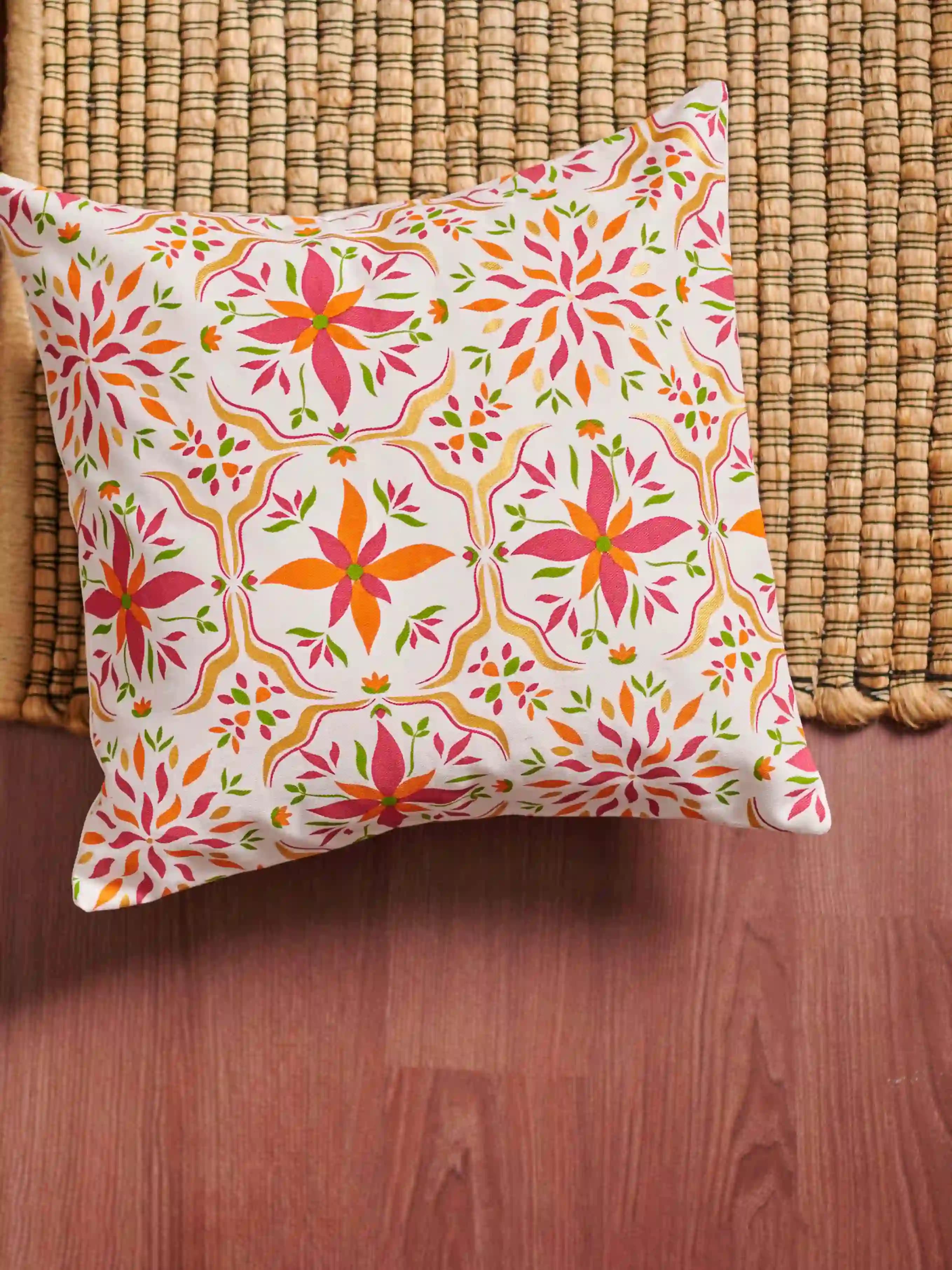 Add a touch of elegance and tradition to your home with this beautiful Iranian motive printed cushion cover by Kaaruj. Made from high-quality, soft, and durable twill cotton, this machine-washable cover is available in two sizes: 16" x 16" and 12" x 20" to perfectly fit your existing cushions.