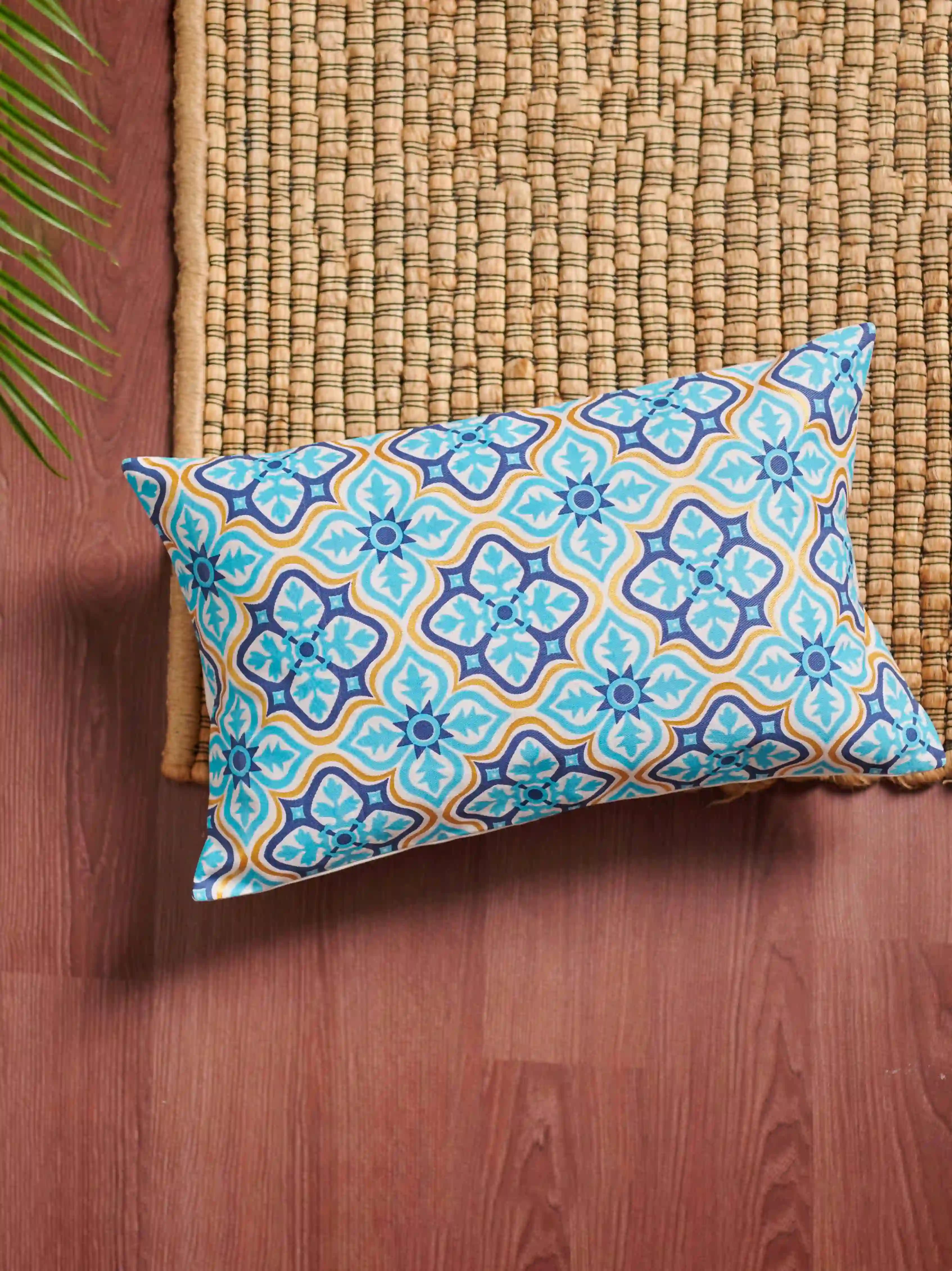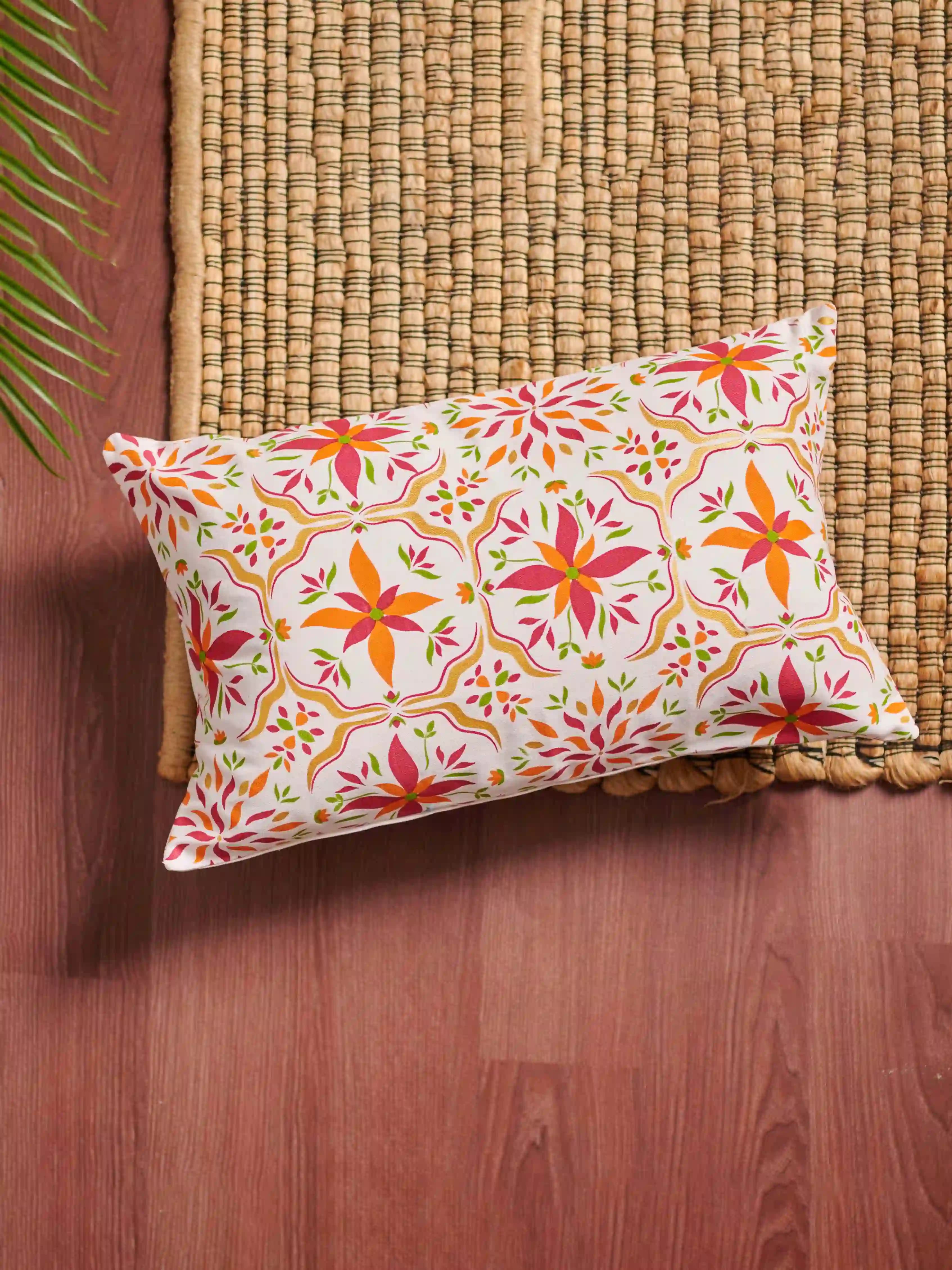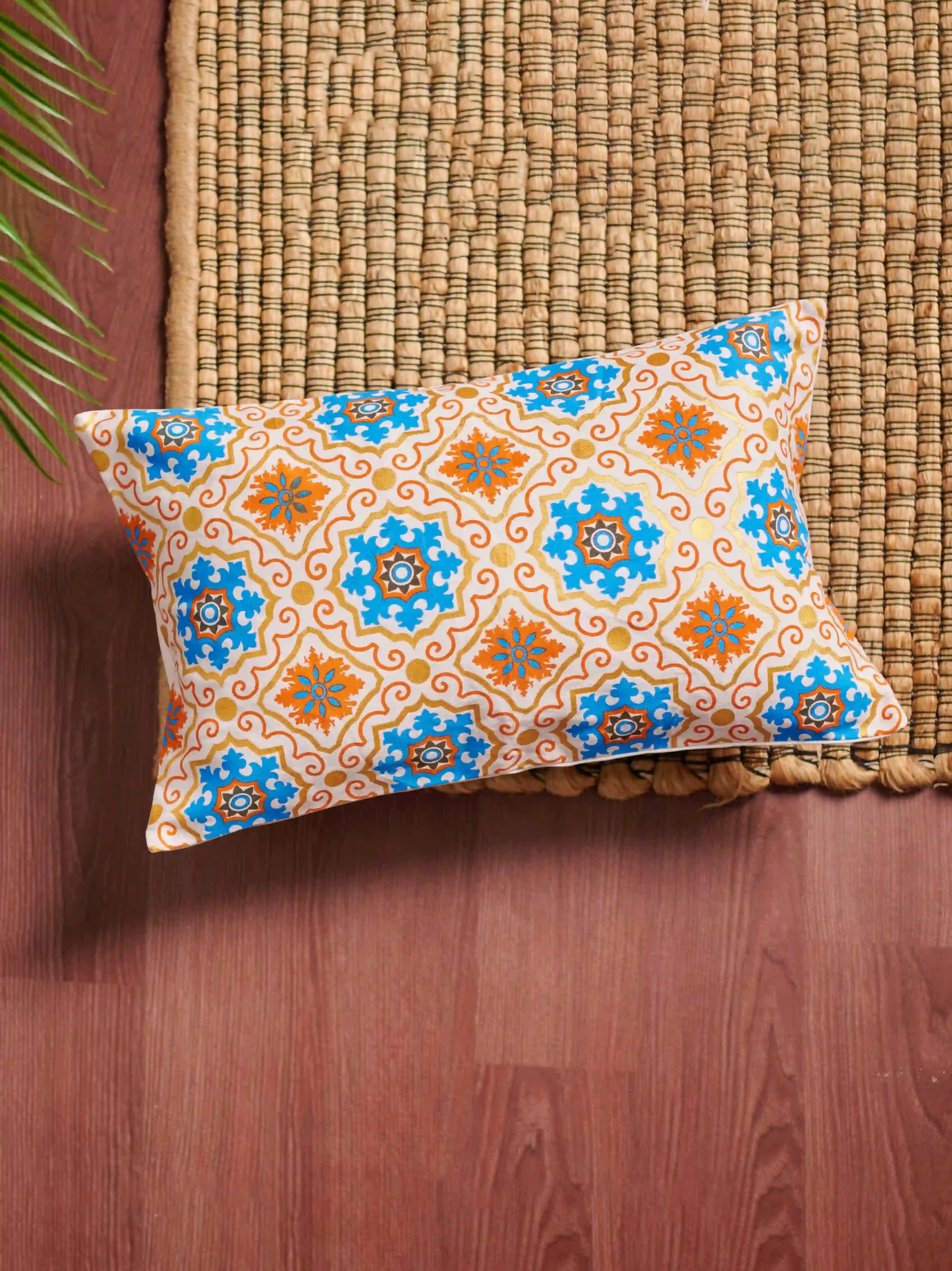 Add a touch of elegance and tradition to your home with this beautiful Iranian motive printed cushion cover by Kaaruj. Made from high-quality, soft, and durable twill cotton, this machine-washable cover is available in two sizes: 16" x 16" and 12" x 20" to perfectly fit your existing cushions.