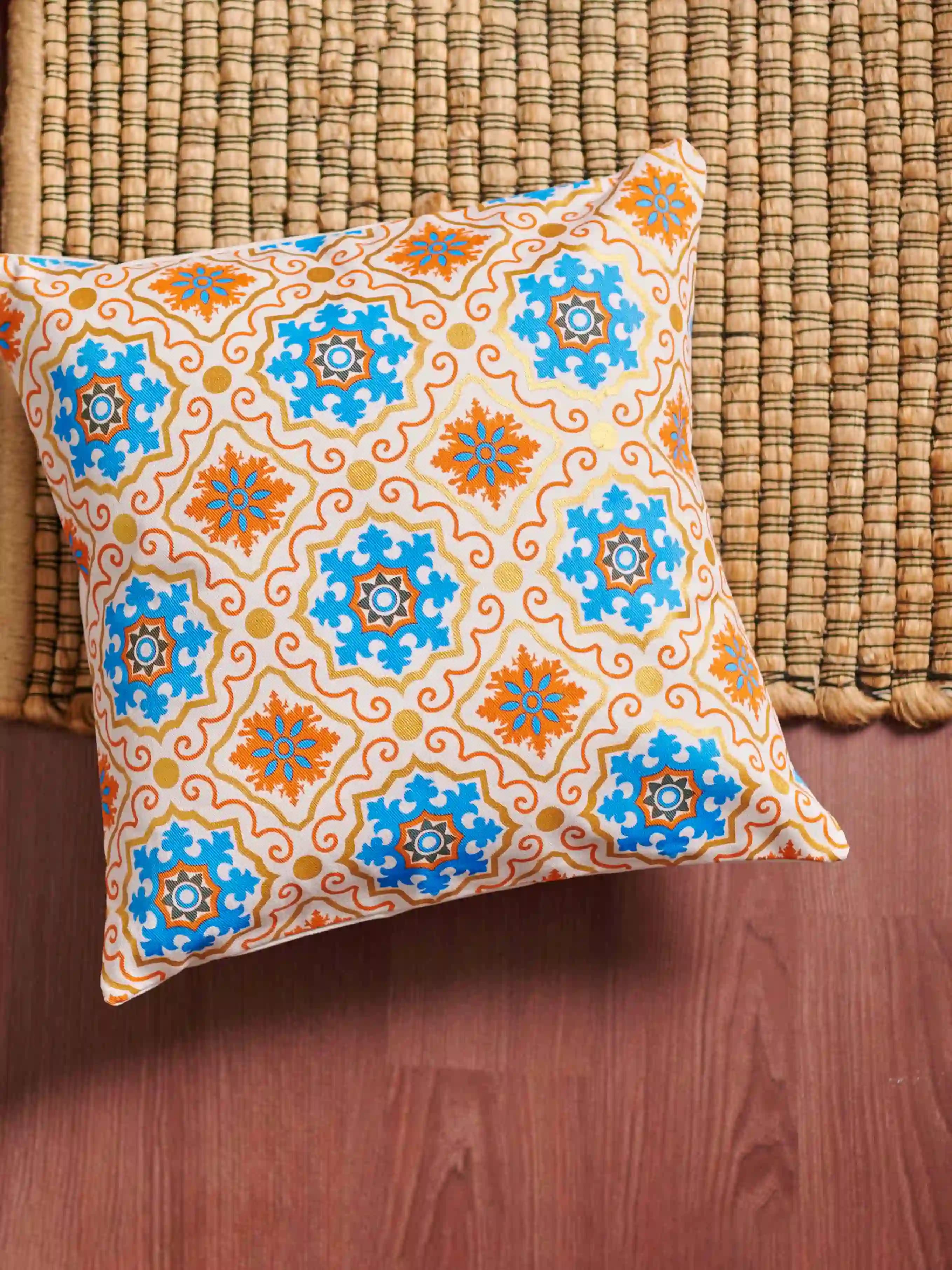 Add a touch of elegance and tradition to your home with this beautiful Iranian motive printed cushion cover by Kaaruj. Made from high-quality, soft, and durable twill cotton, this machine-washable cover is available in two sizes: 16" x 16" and 12" x 20" to perfectly fit your existing cushions.