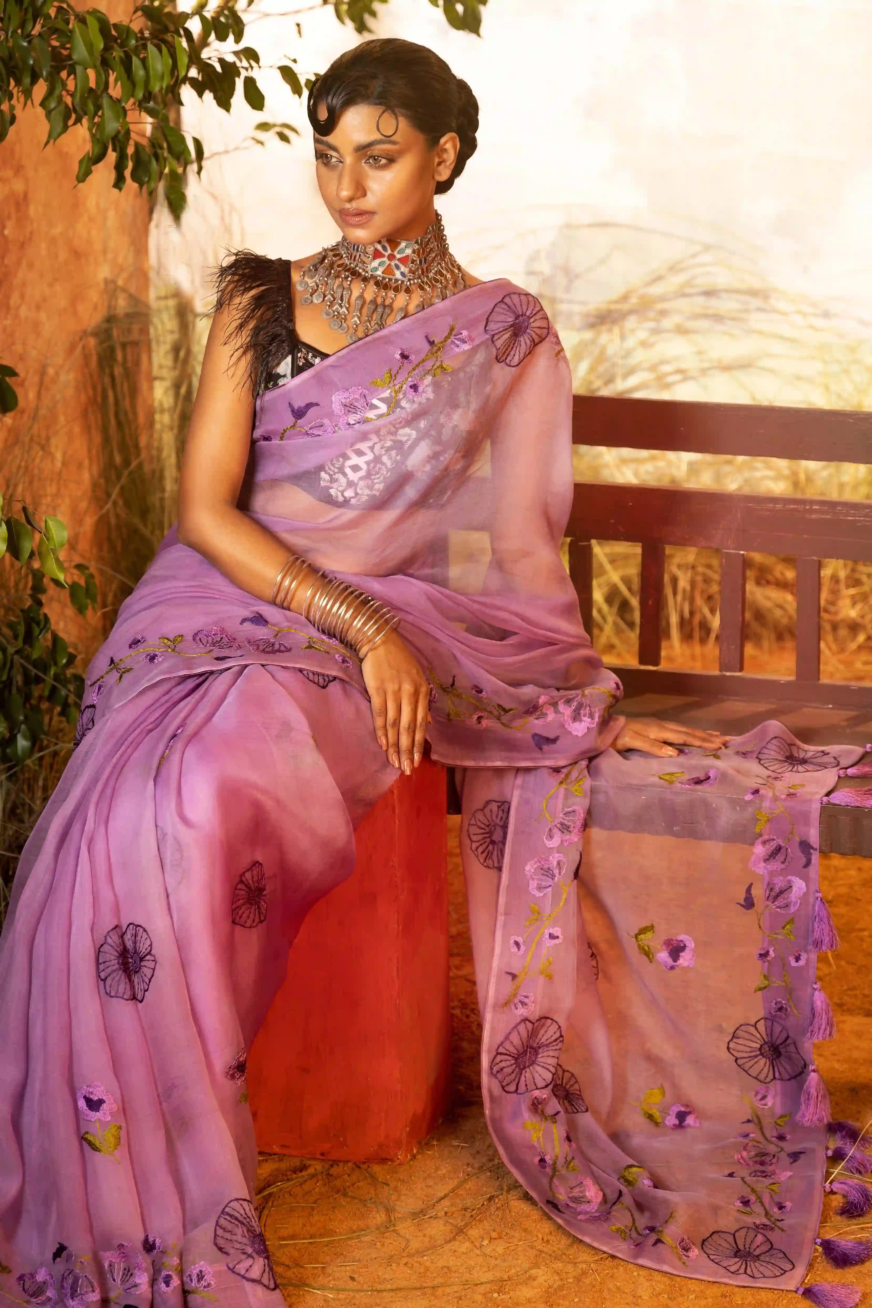 Hand-Stitched Muslin Saree
