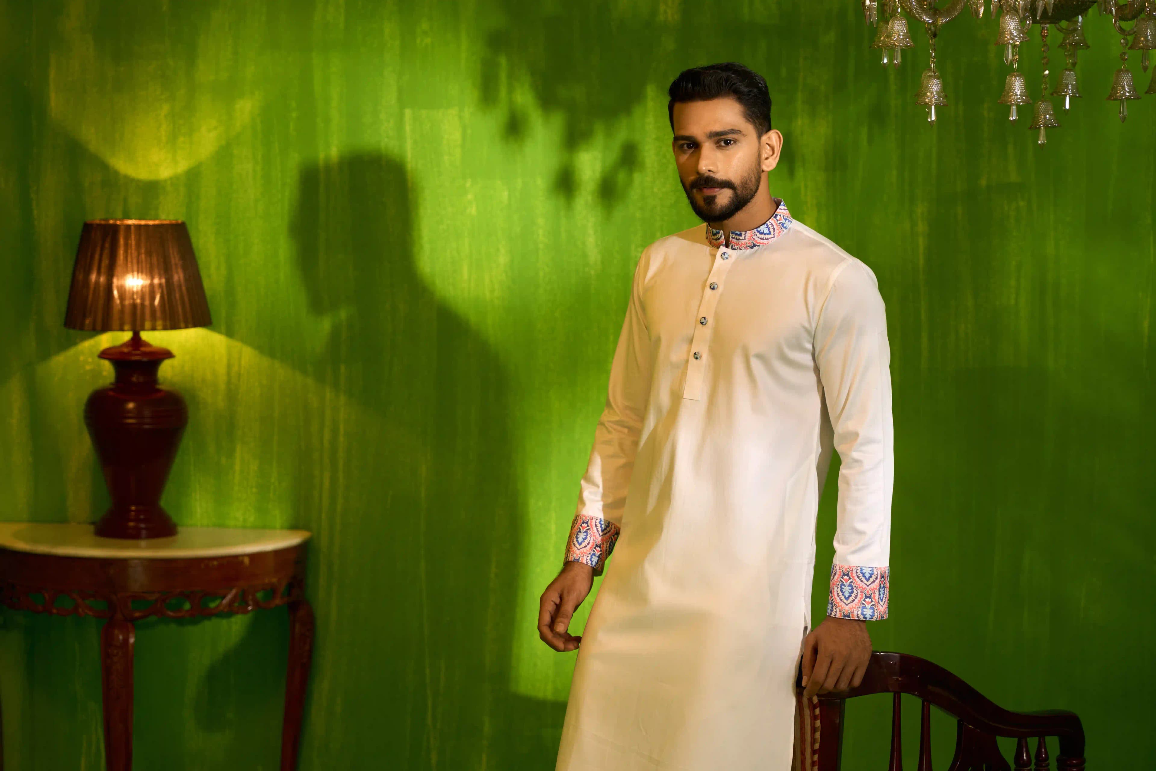 KARUJ IN STYLE presents a premium cotton men's panjabi that is perfect for summer wear. Made from soft and breathable cotton, this panjabi will keep you cool and comfortable all day long. It features a classic design with a button-down front and a regular fit. The panjabi is available in white and black, and comes in a variety of sizes to fit all.