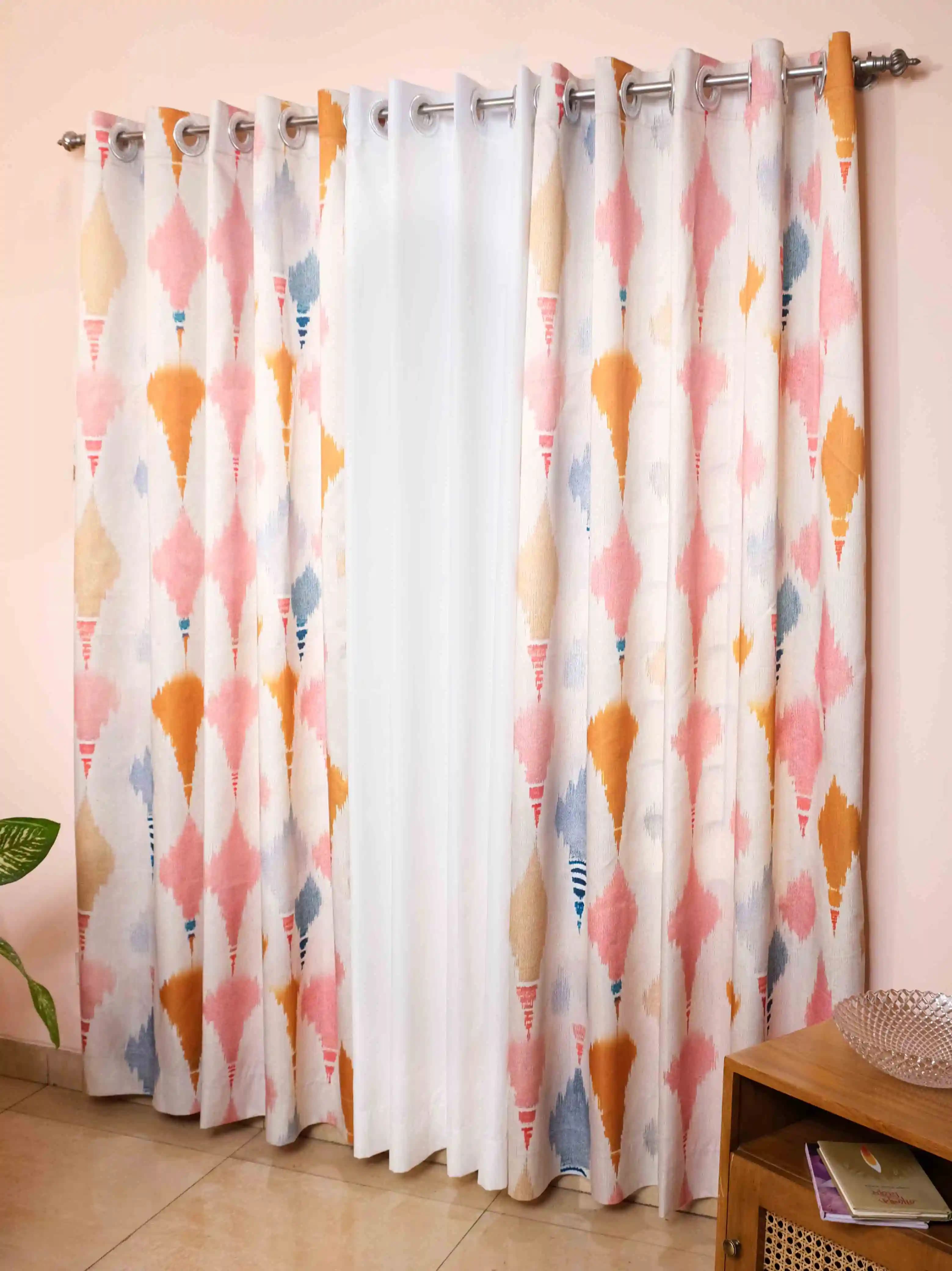 Add a vibrant, artistic touch to your windows with our Ikat print curtain. Crafted from smooth polyester fabric, this panel features a captivating, multi-colored sublimation print. It offers a beautiful balance of light filtration and privacy. The bold, traditional pattern brings a global-inspired warmth to any room.