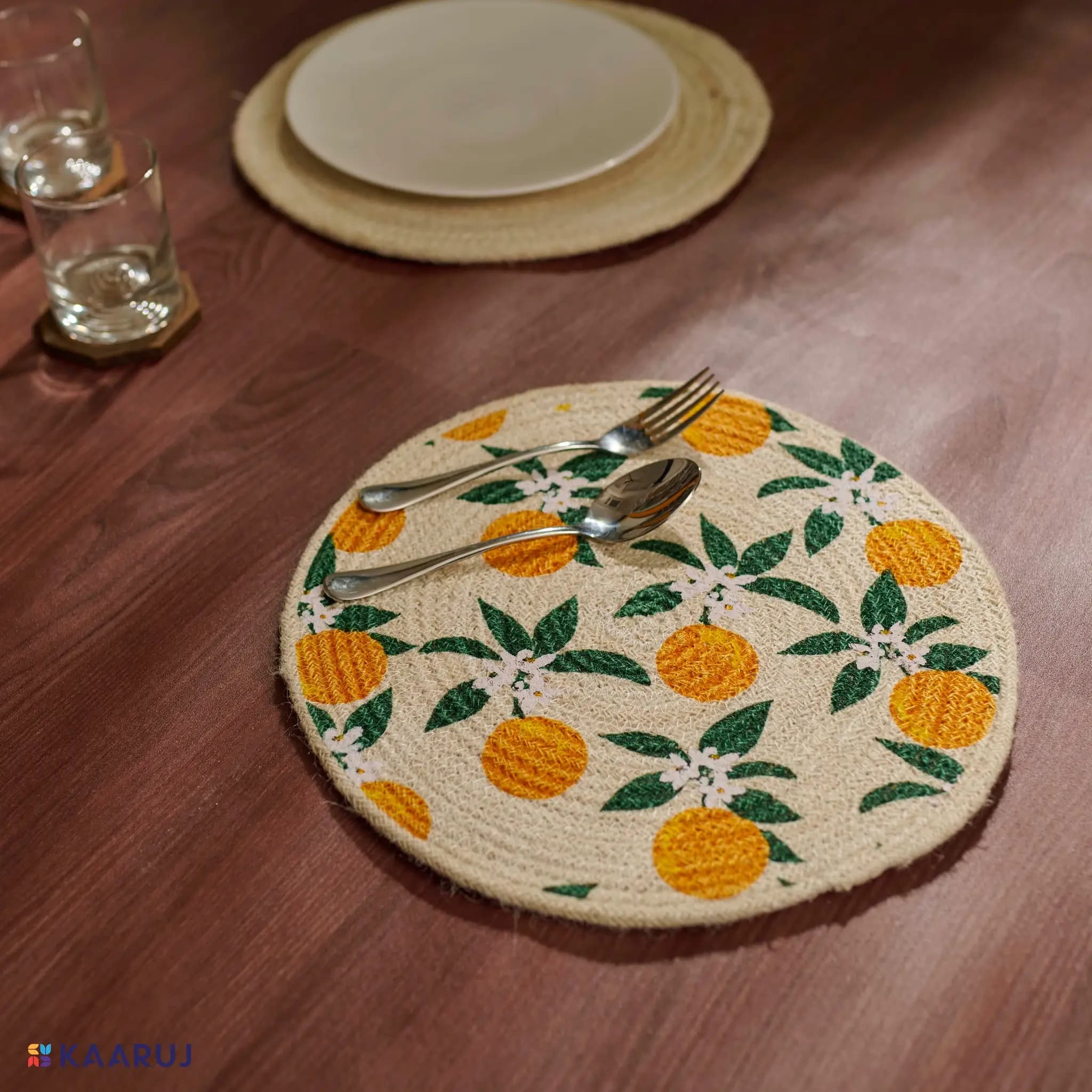 These beautiful round placemats are made from premium jute braid and feature a charming fruit motif. They are the perfect way to add a touch of elegance and sophistication to your tablescape.