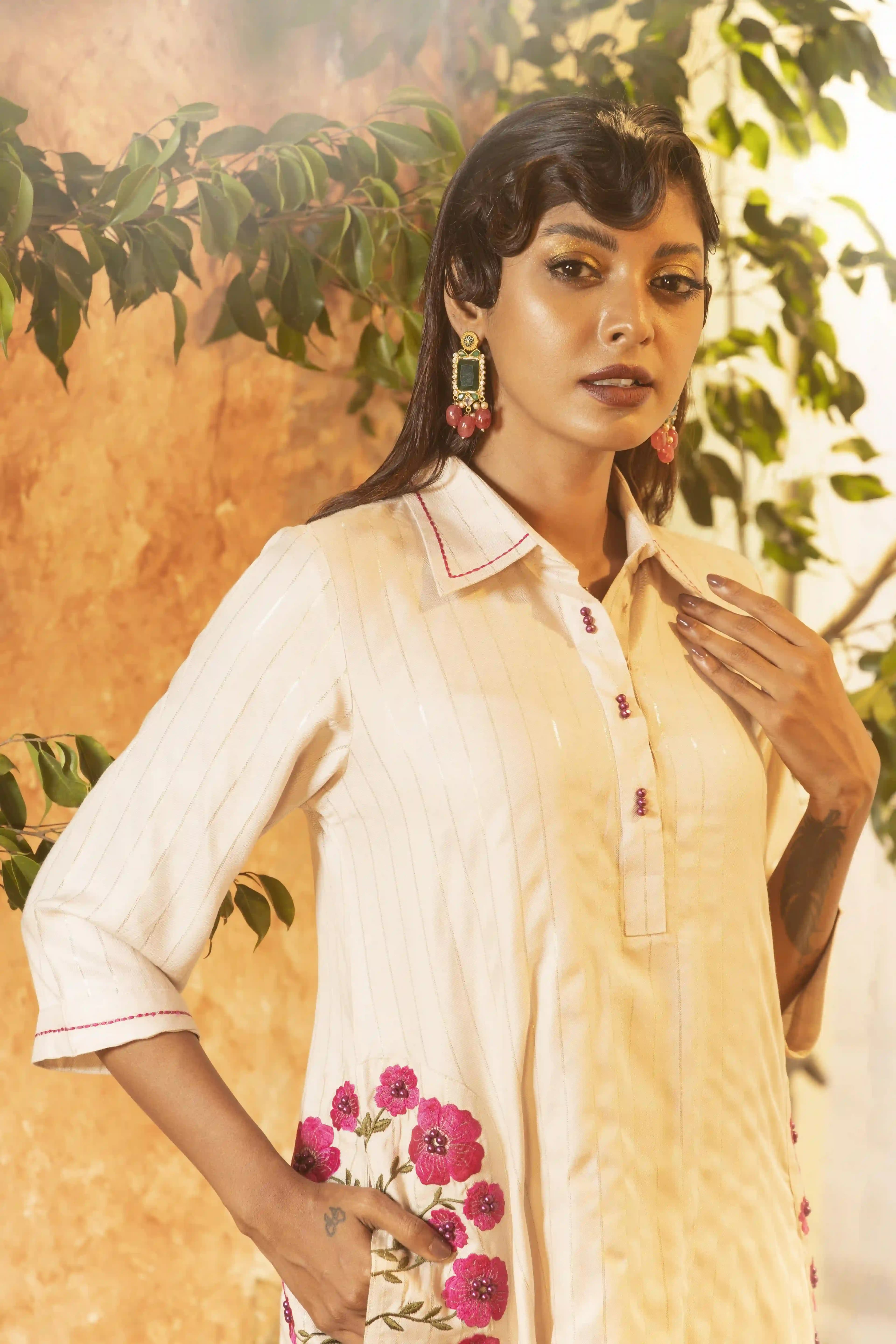 Stay warm and fashionable this winter with our beautiful two-piece ethnic set. Crafted from soft net cotton and adorned with delicate hand-stitched karchupi work, this set is both comfortable and eye-catching.