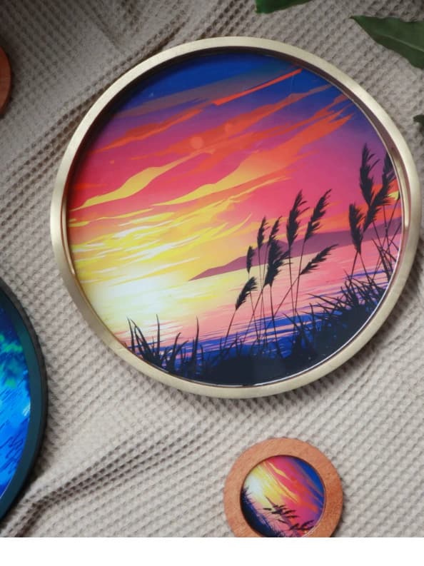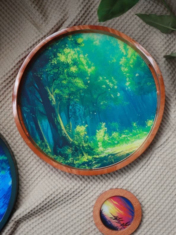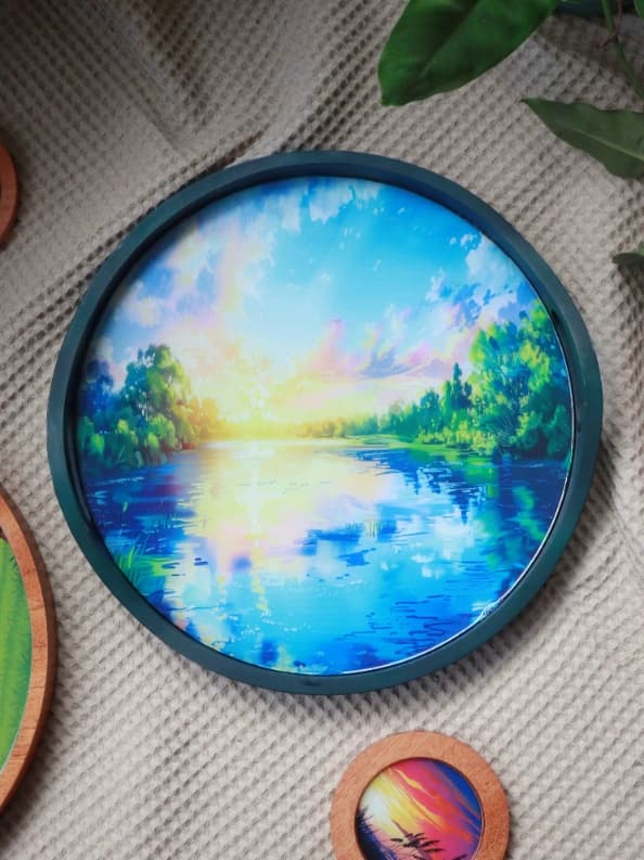 This beautiful Round Wooden Resin Tray combines natural wood with stunning teal and gold resin for a unique look. Perfect for displaying decor, holding jewelry, or serving snacks, it adds a touch of elegance to any space. The 12.2" round design is both stylish and functional. Handcrafted for durability, it’s a must-have for home décor.